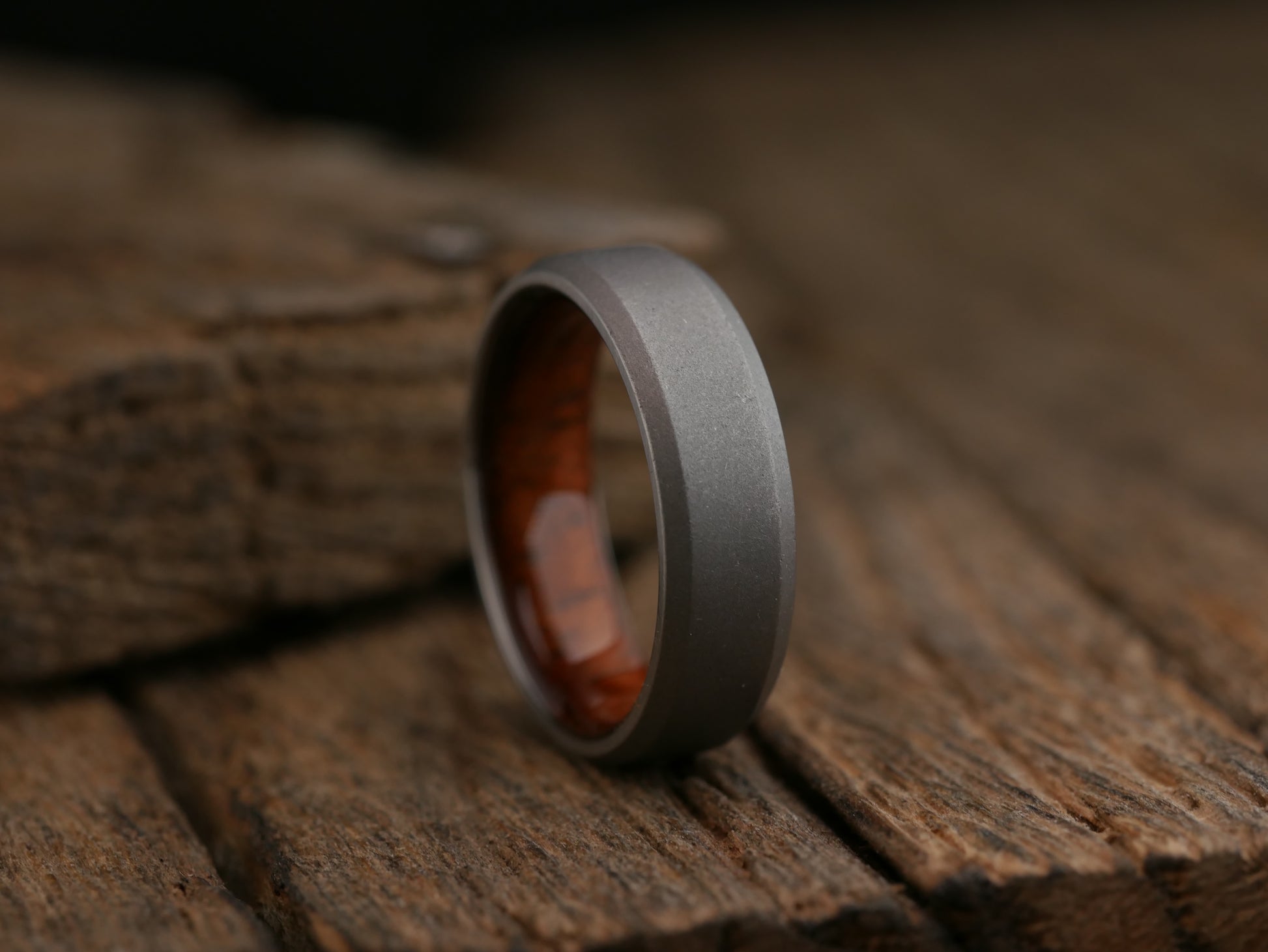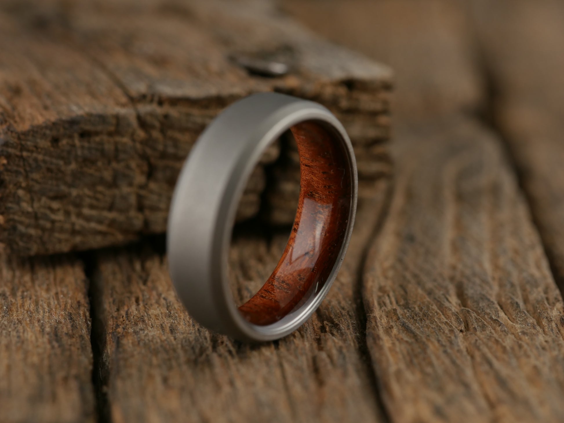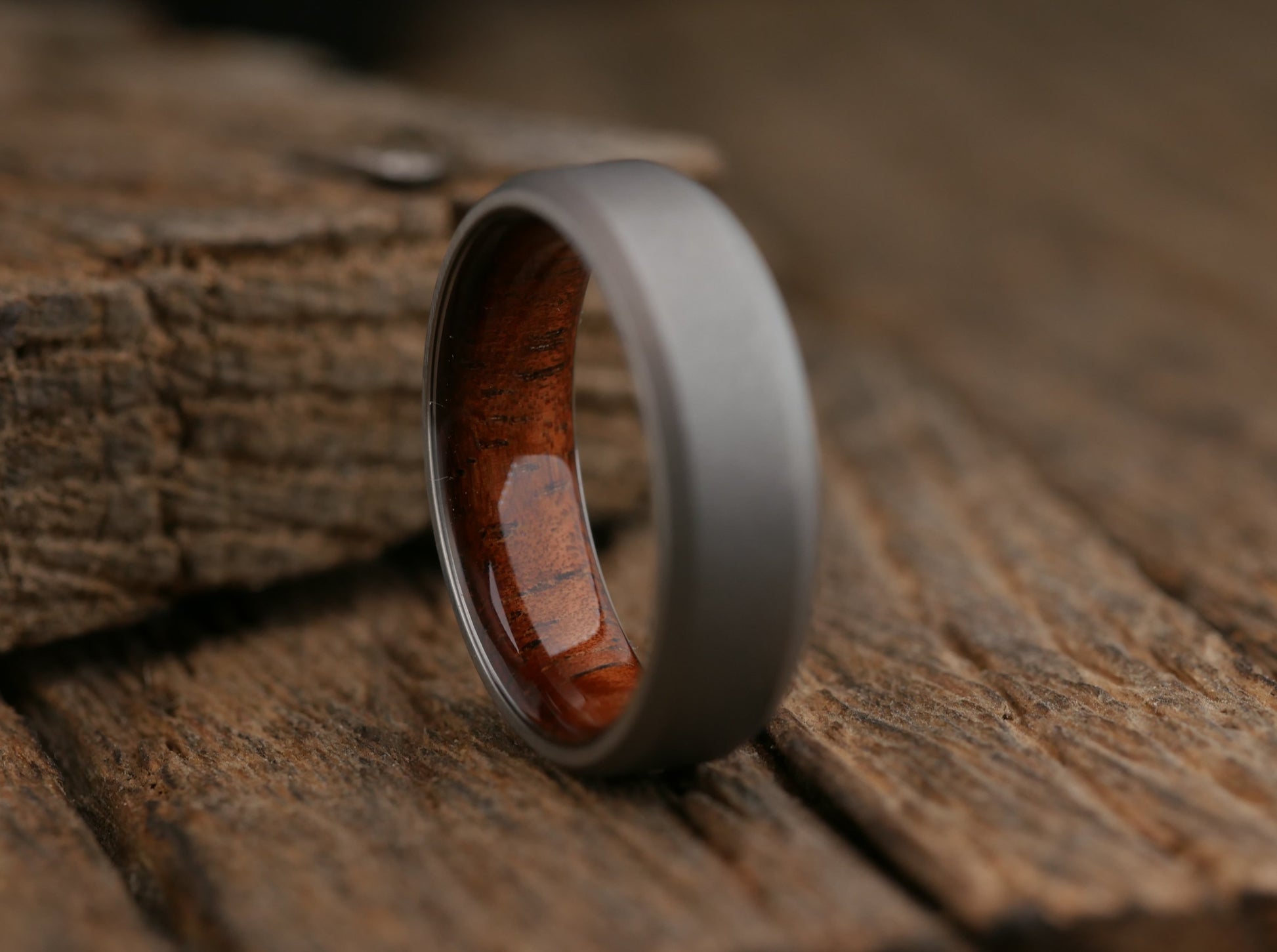 This men's wedding band has the durability of super-strong aerospace grade titanium and is given a stonewashed finish which (in addition to looking amazing) is an excellent, durable finish that hides extremely well any nicks and dings that inevitably show up with day-to-day wear. The liner is crafted from beautiful Hawaiian koa wood and given a comfort fit with a 100% waterproof finish for long-term wear and of course, carries my lifetime guarantee!