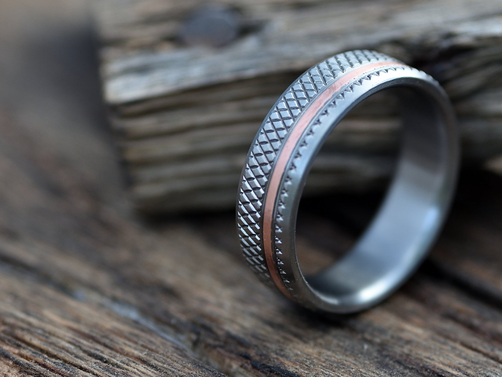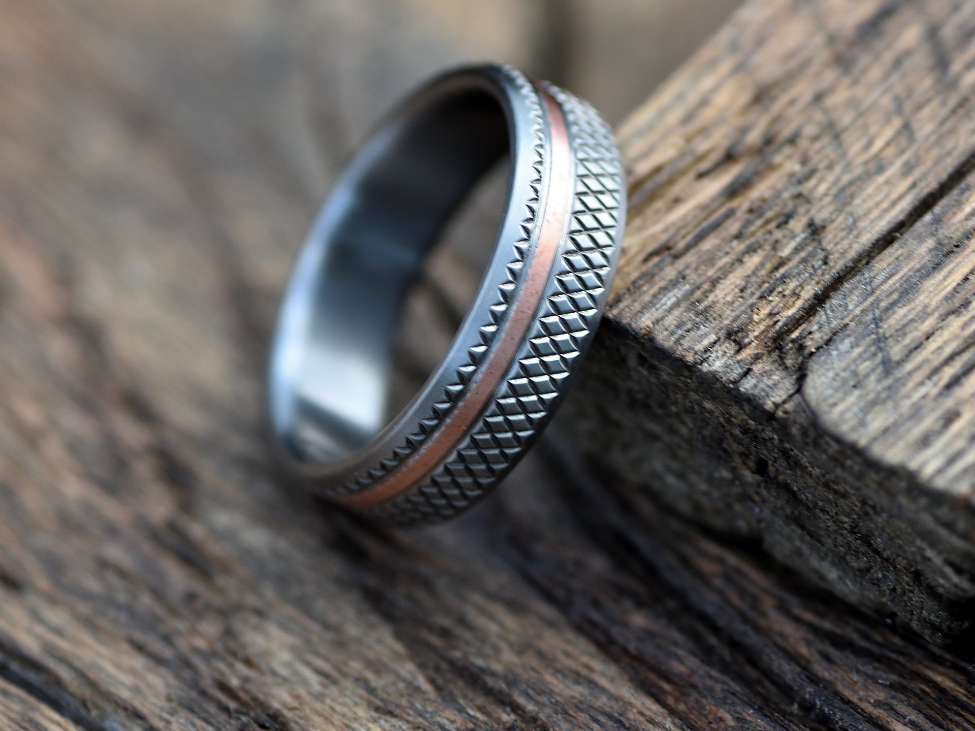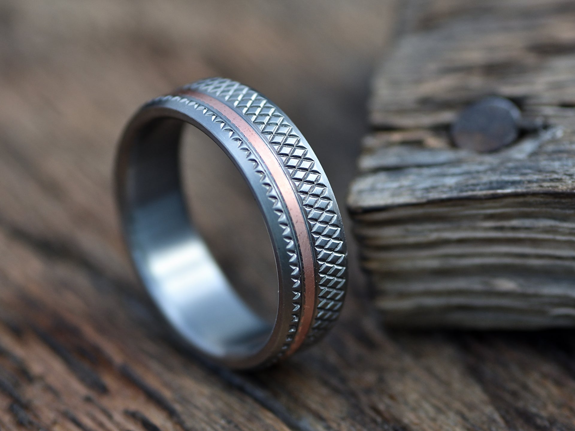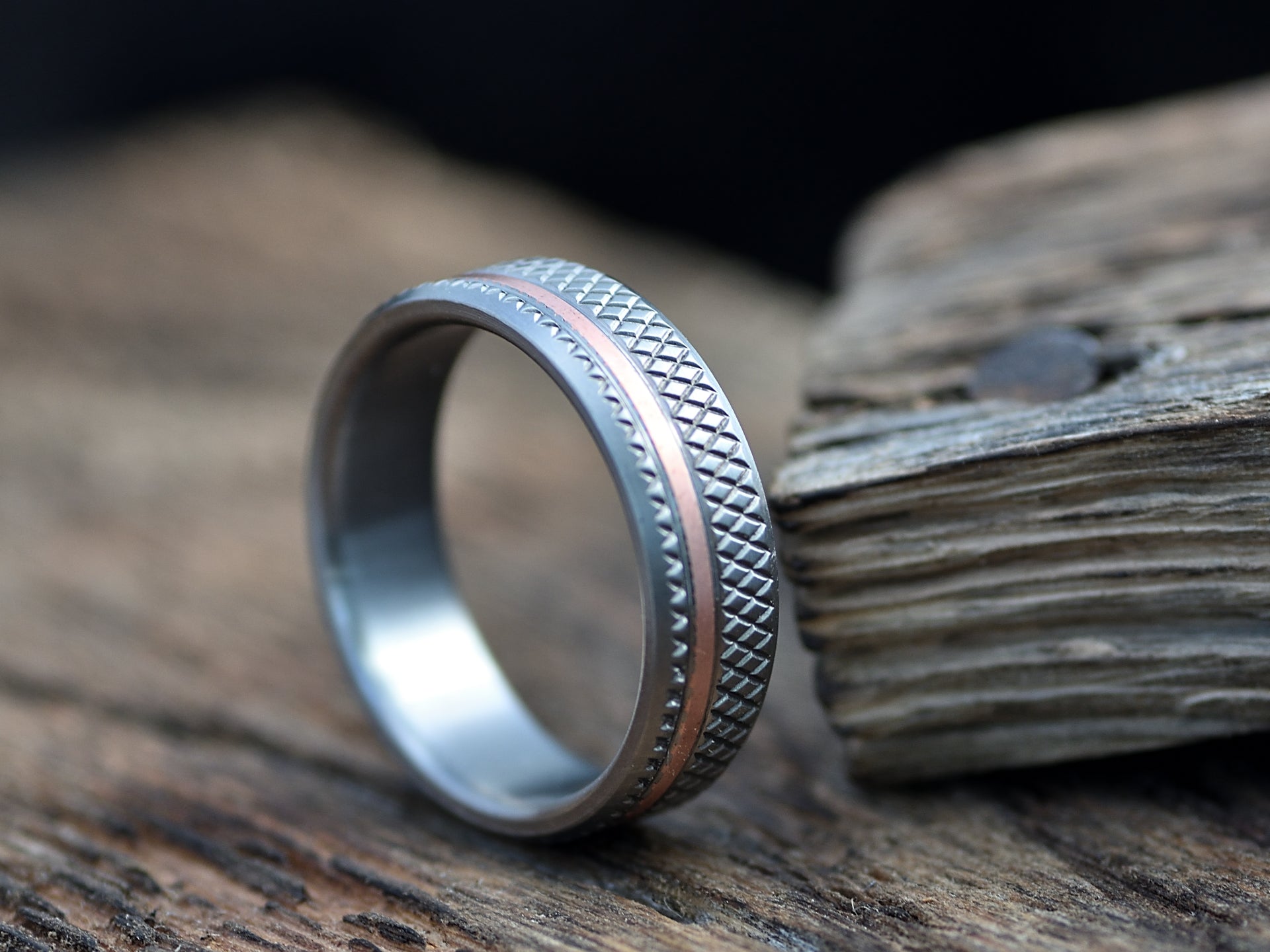 Titan (Bright) - Titanium and Copper Inlay Men's Wedding Band